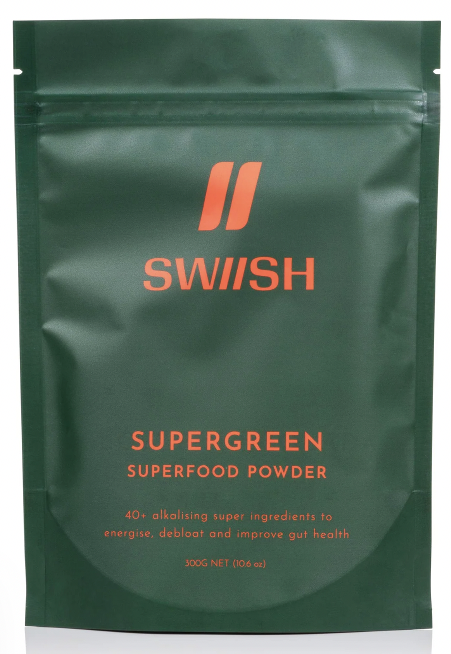 The SWIISH SUPERGREEN Superfood Powder is specifically designed to be a delicious, fast and easy way to get essential vitamins, minerals and nutrients in one go, with over 40 different super-powered ingredients.
