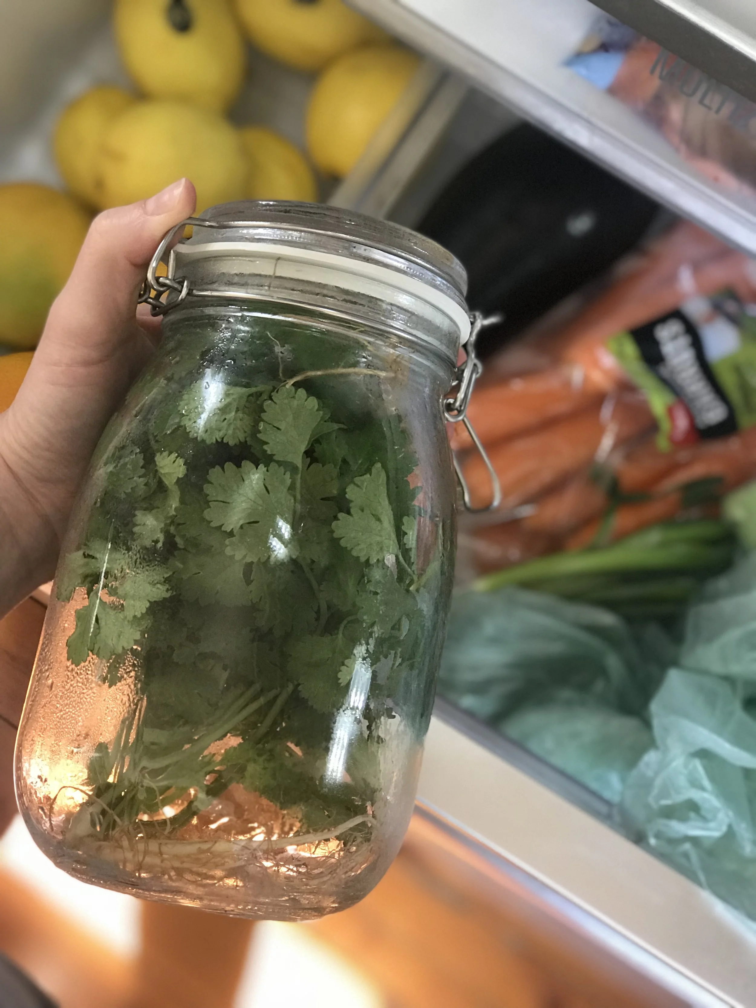 I don’t know how I have gotten through the last say 15 years of my cooking life without knowing this herb hack. It’s been a game changer. I’ve tried, cling wrap, zip locks, plastic bags, wet paper towel, containers, eco wraps. You name it, the list goes on. So I’ll let you in on a little secret… glass jars. If you have a mason ball jar, a glass casserole dish or any old glass jar with a lid, you have already extended your herbs lifetime. It’s that simple. A glass jar. I don’t wash my herbs before placing them in, as any extra moisture may wilt them quicker than you like. Just wash them as you need and you will have fresh herbs in the fridge for up to 2-3 weeks! There you have it! Let me know how you go in the comments below X